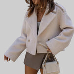 Kapp puhtade, korrastatud joontega ja täpselt määratletud lõikega, mis rõhutab naise siluetti. Selle lühike pikkus teeb selle ideaalseks linnakeskkonda ning elegantsetele õhtusöökidele. Kahe rida nööbimine annab kapile lihtsuse ja ajatu välimuse, ilma liigsete kaunistusteta.
