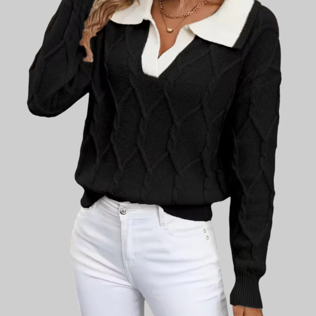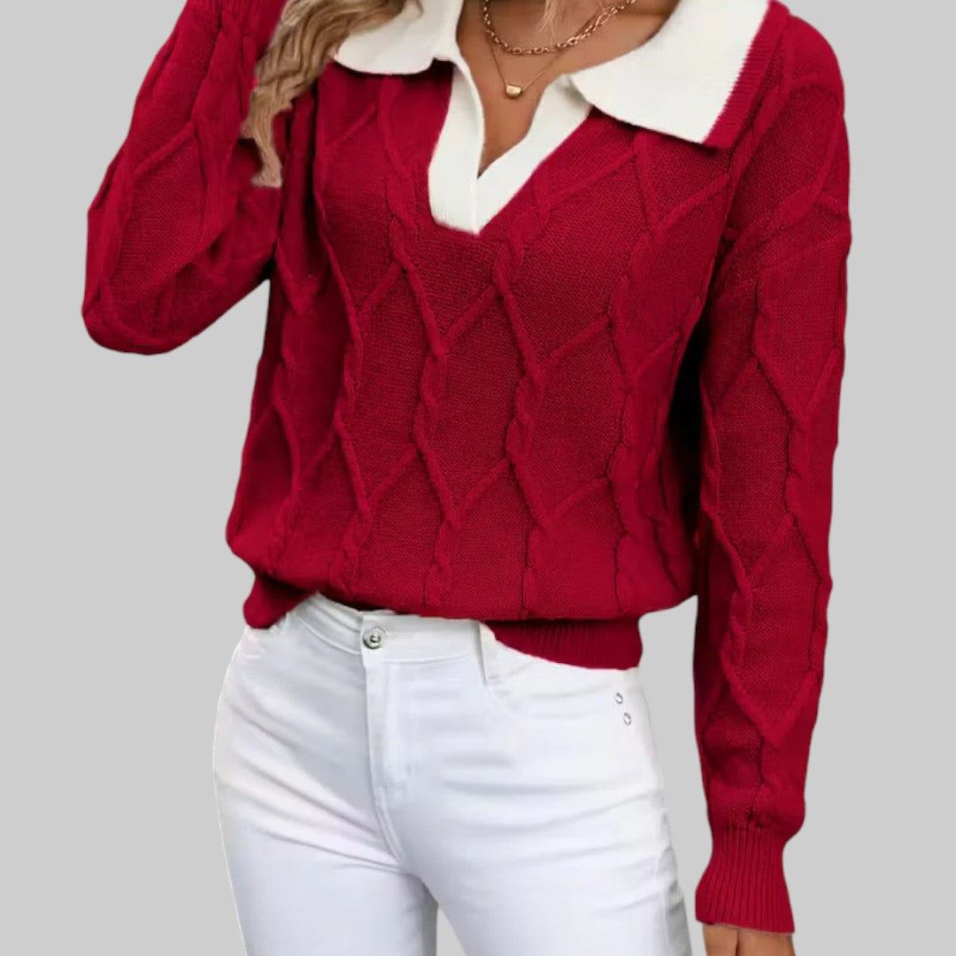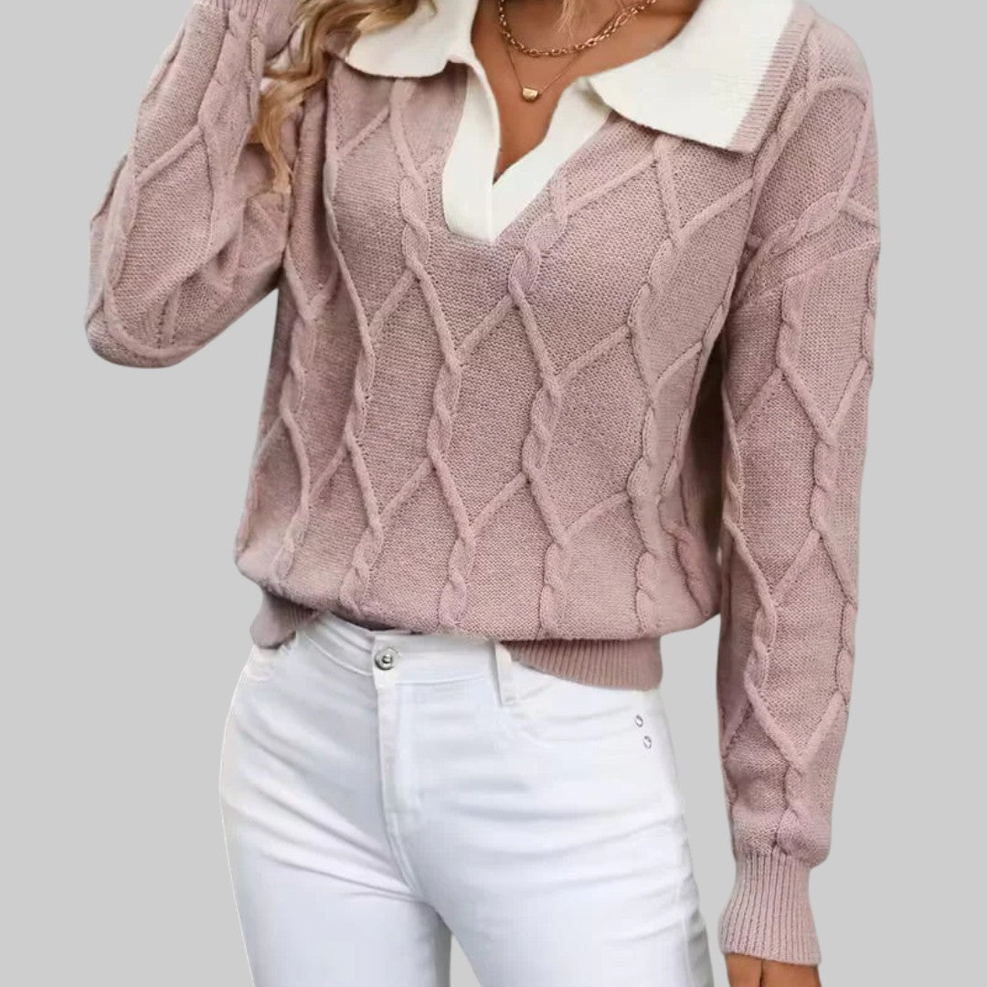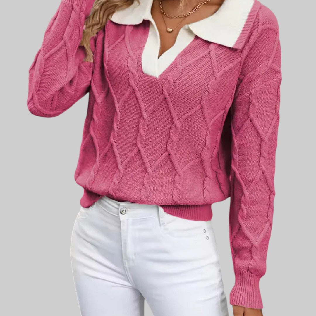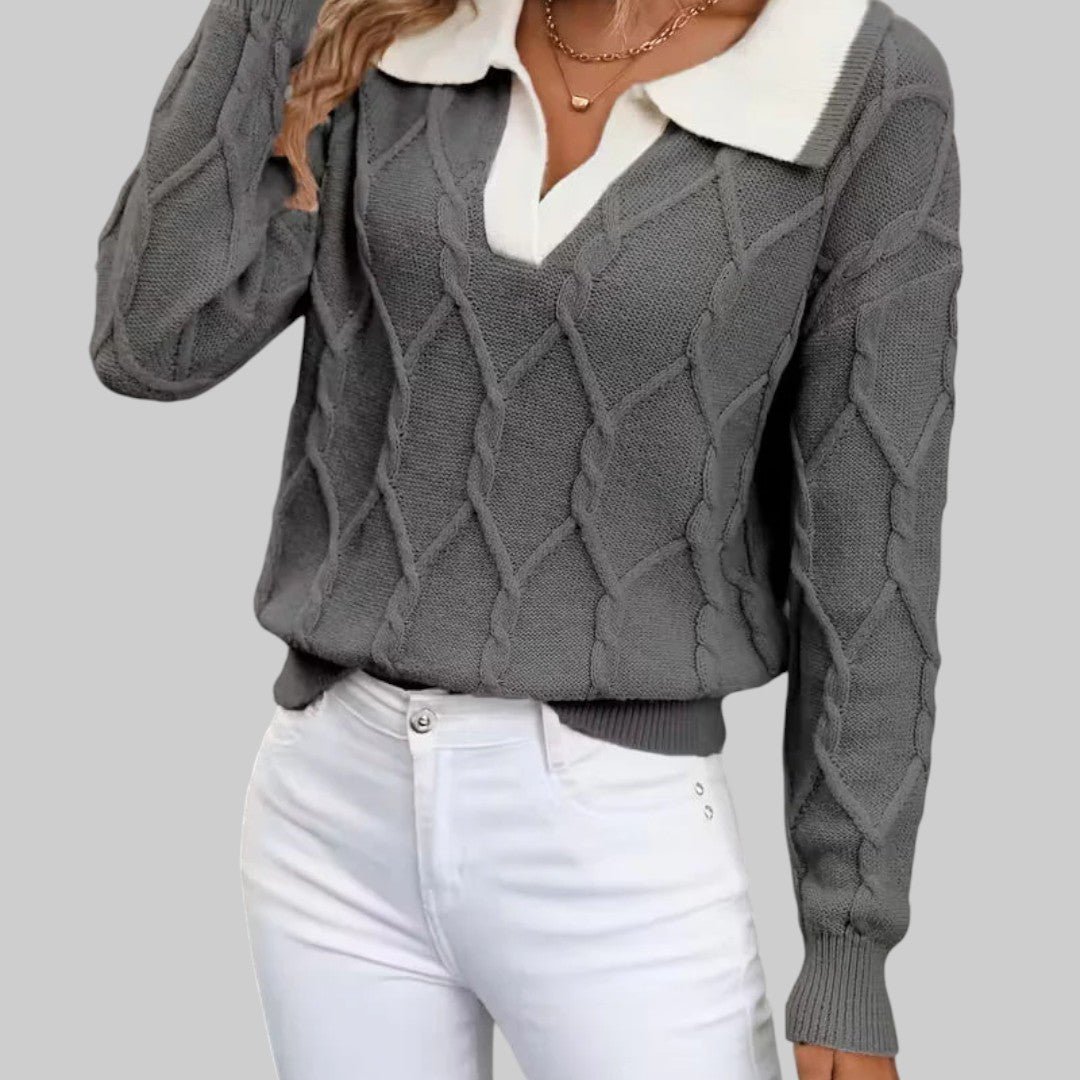 Lisa oma riietusele klassikalist šarmi kudumiga Kveta, millel on krae ja vrusetimuster!