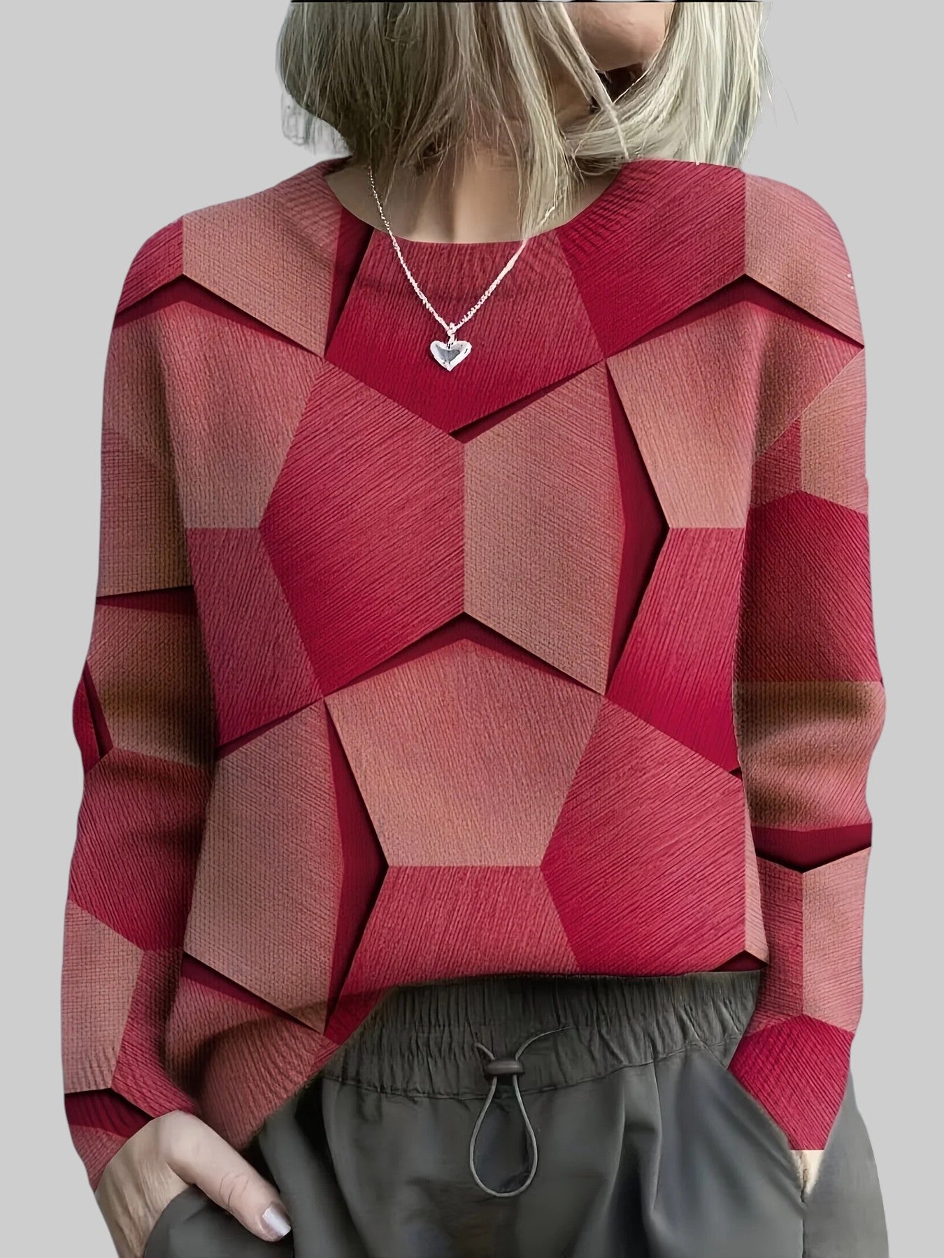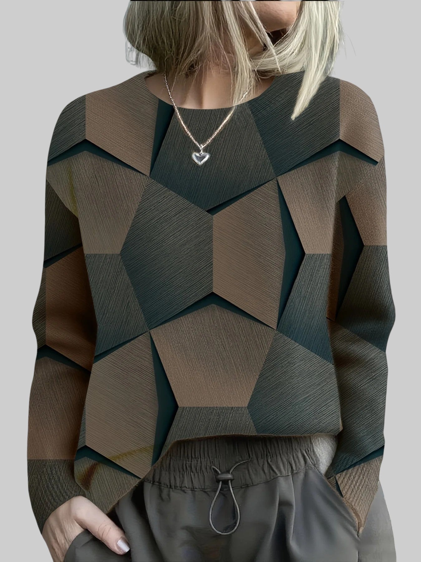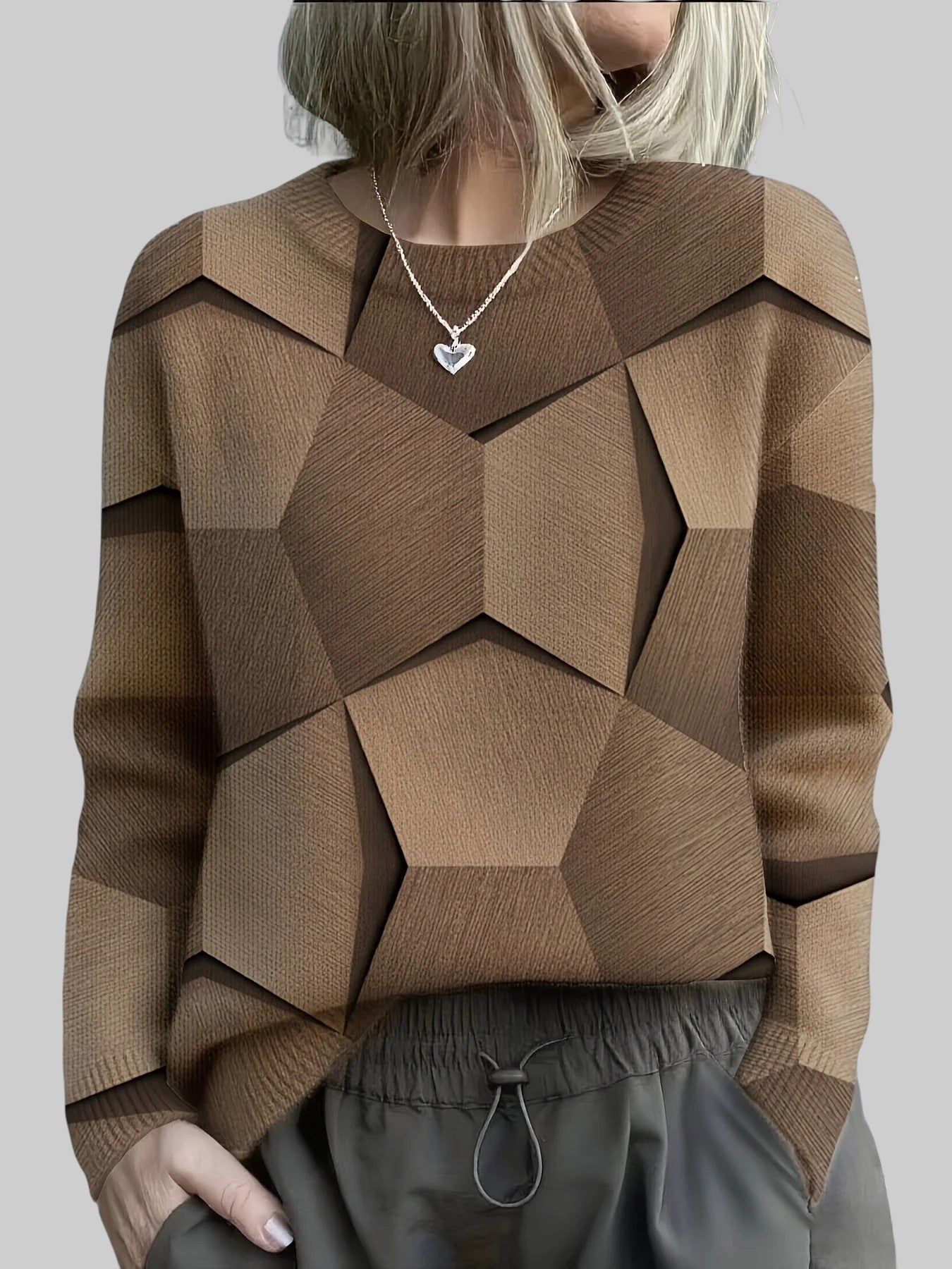 3D geomeetriline struktuur – ainulaadne muster lisab sügavust ja iseloomu, reljeefne kudumine toob kaasa kaasaegse nüansi ja muudab klassikalise sviitri erakordseks osaks.