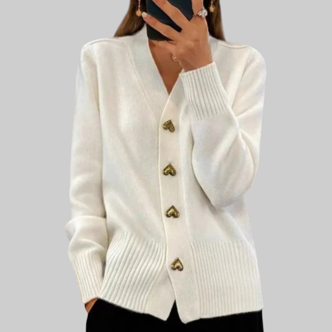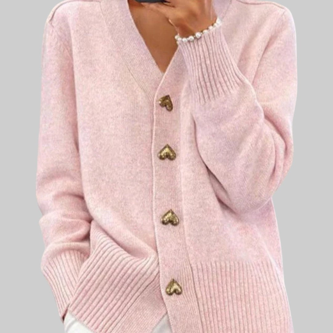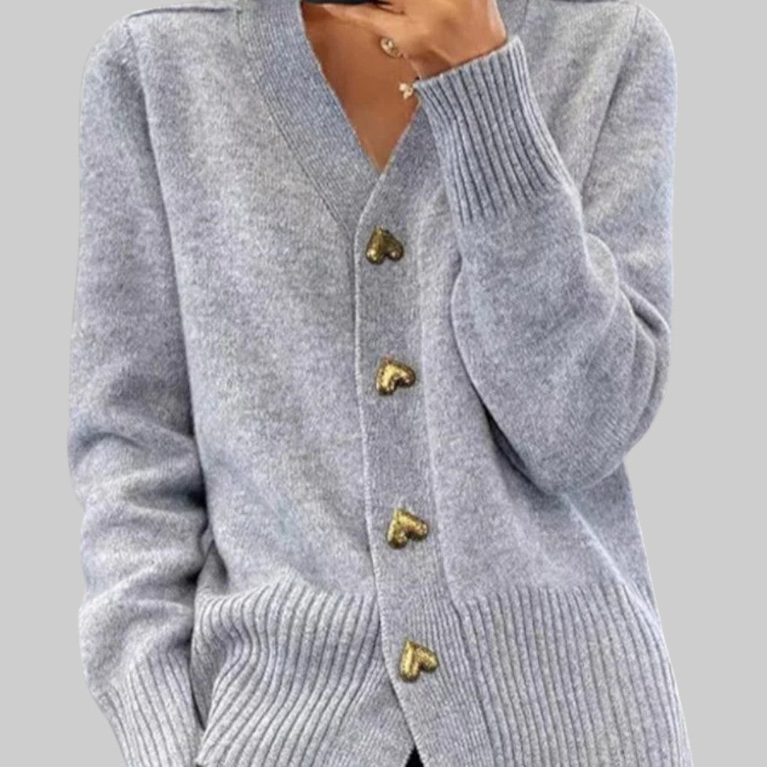 Kampsun SYLVIA ühendab mugavuse, stiili ja kõrge kvaliteedi ühes erakordses tükis. Valmistatud pehmest ja vastupidavast kvaliteetsest kangast, on see mõnus puudutada ja pakub mugavust kogu päeva. Mängulised südamekujulised nupud lisavad naiselikku ja ainulaadset aktsenti. Ideaalne valik igapäevaseks kandmiseks ja hubasteks õhtuteks.