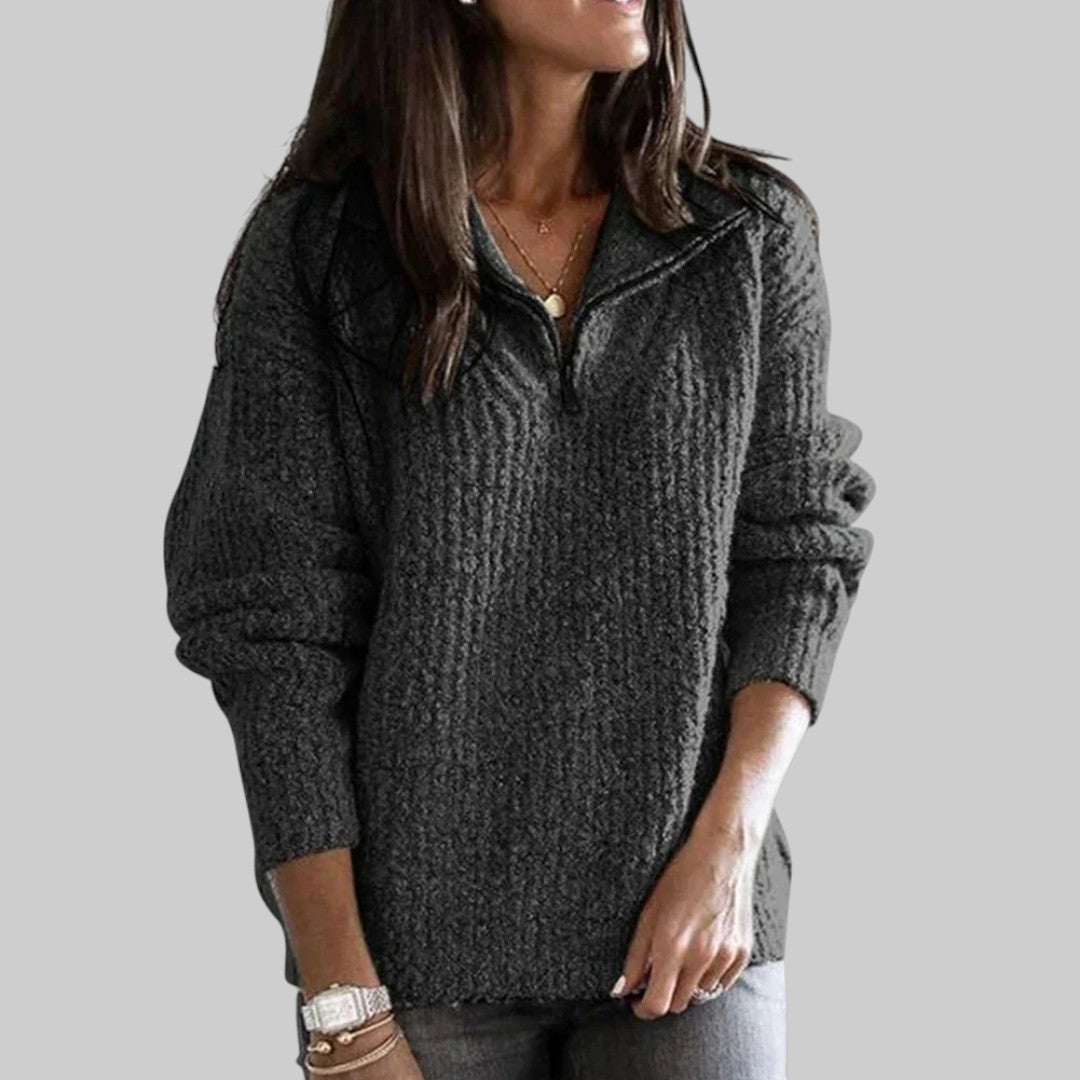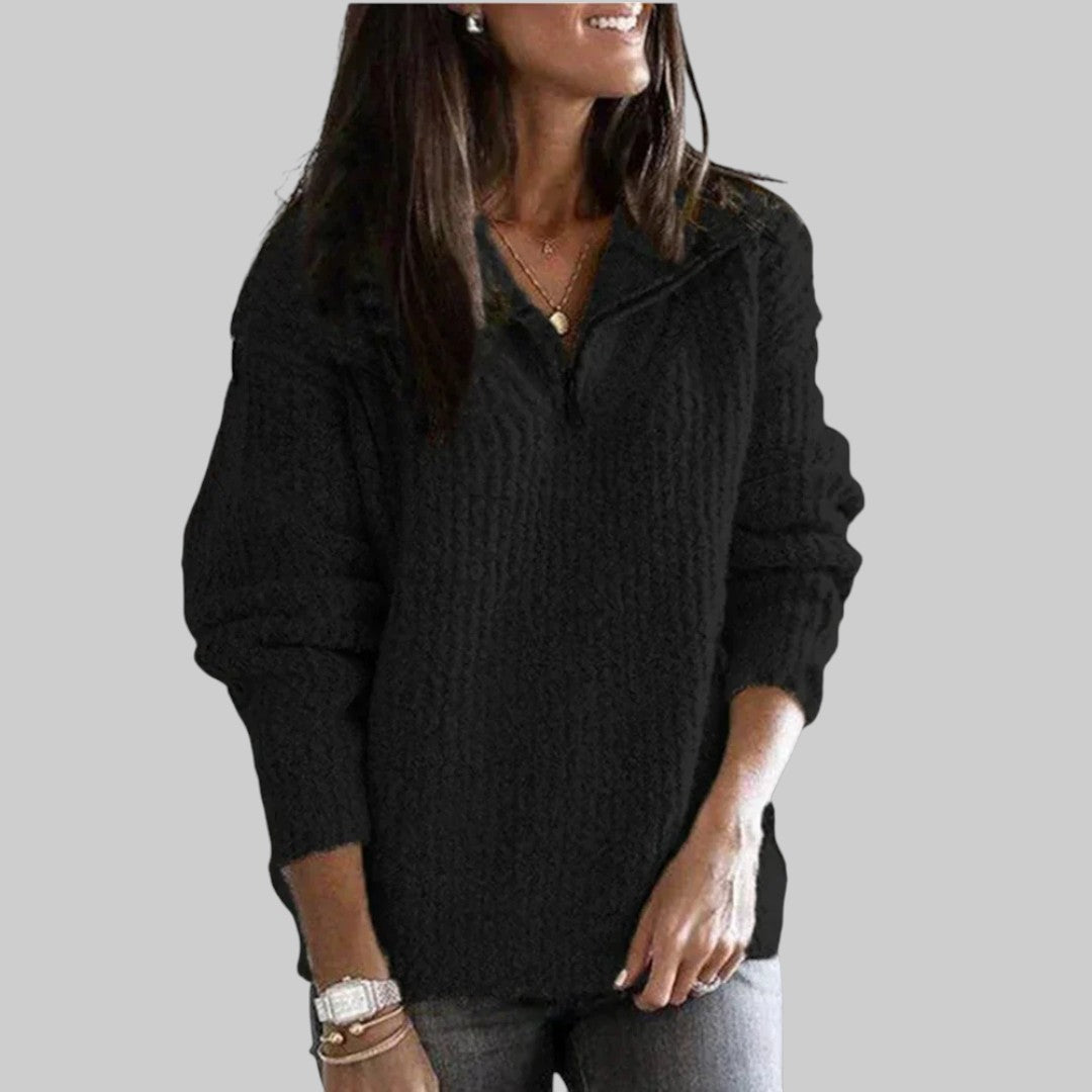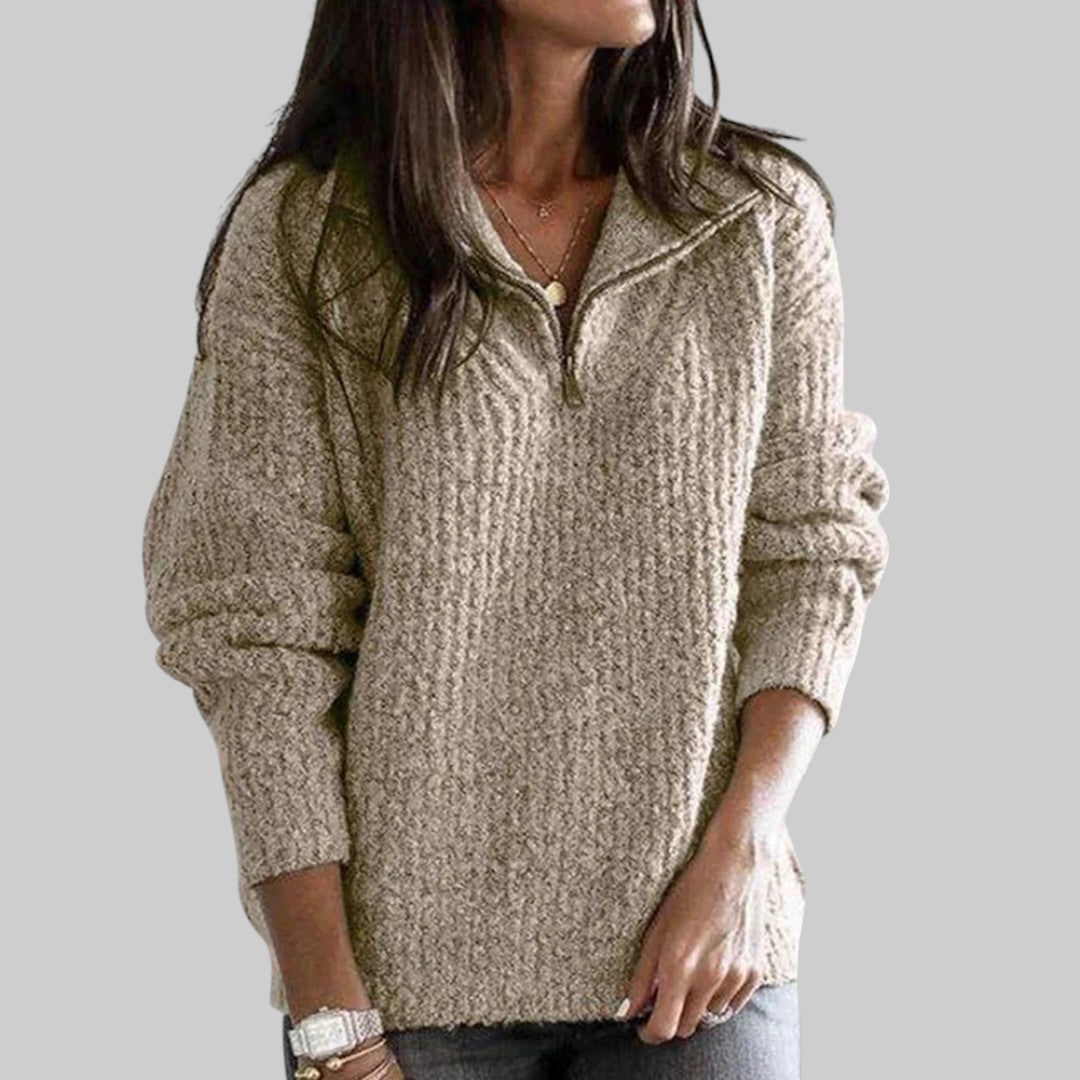 See mugav poolelise sihiku kaelusega svetter on ideaalne jahedamateks päevadeks. Tänu vabale lõikele ja pikadele varrukatele sobib see suurepäraselt kokku teksade või retuusidega. Detail sihikuga lisab stiili ja praktilisust – ideaalne vabaaja päevadeks!