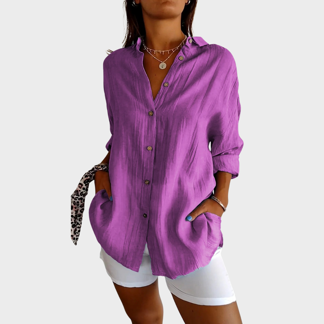 See elegantne särk on lõdva stiili kehastus. Tänu oma õhulisele tekstuurile ja ees nööpidega kinnitusele pakub see sulle vabadust ja pehmust ühesainsas disainis. Aegumatu lõige ja pehme struktuur teevad sellest ideaalse igapäevaseks kandmiseks ja reisimiseks, kus mugavus ja elegants sulanduvad täiuslikku harmooniasse. Sa saad kanda seda vabalt, pükstesse sisse panduna või kerge ülehüüdena – võimalused on lõputud.