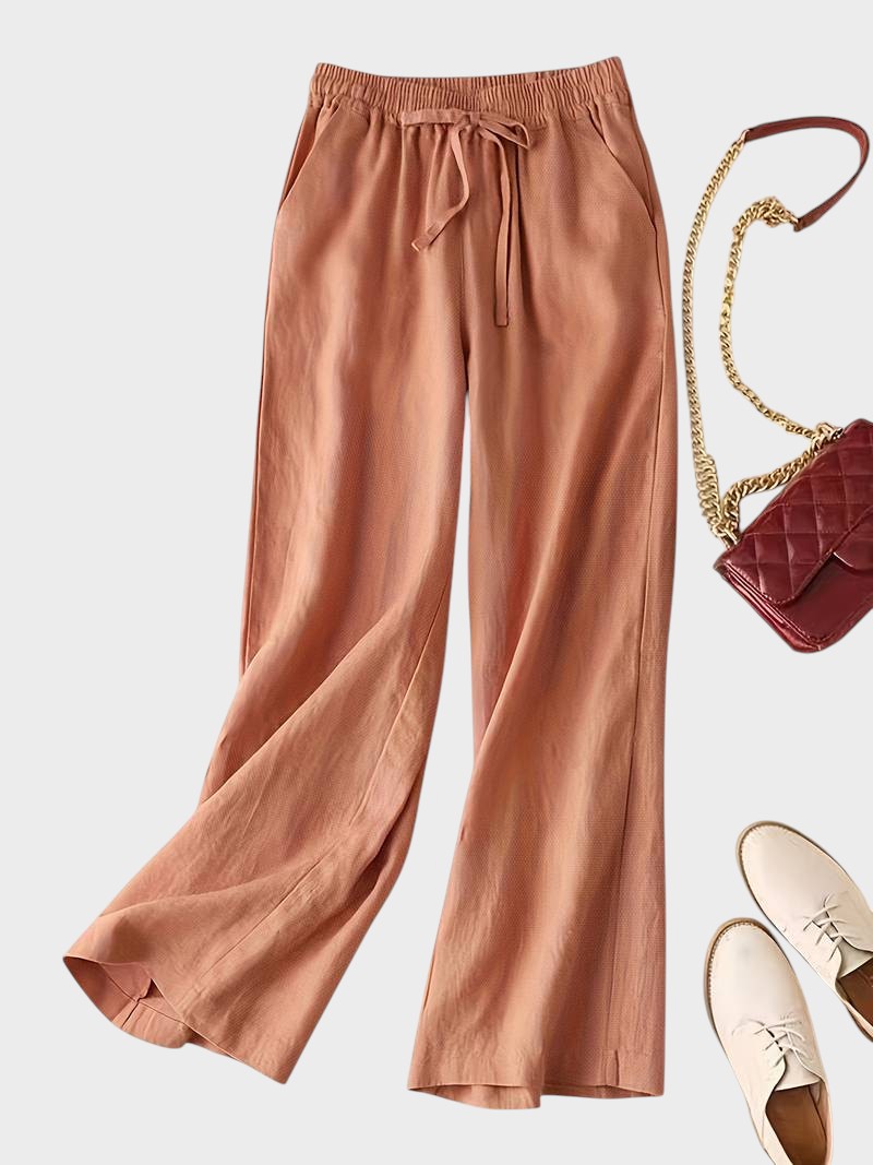 Vaba lõige ja elastne vöö tagavad ideaalse sobivuse kõigile kehakuju tüüpidele, samas kui nöör lisab kohandatavuse ja stiili. Kaunid värvid annavad teie garderoobile sooja, loodusliku tooni ja on kergesti kombineeritavad erinevate toppide ja aksessuaaridega.